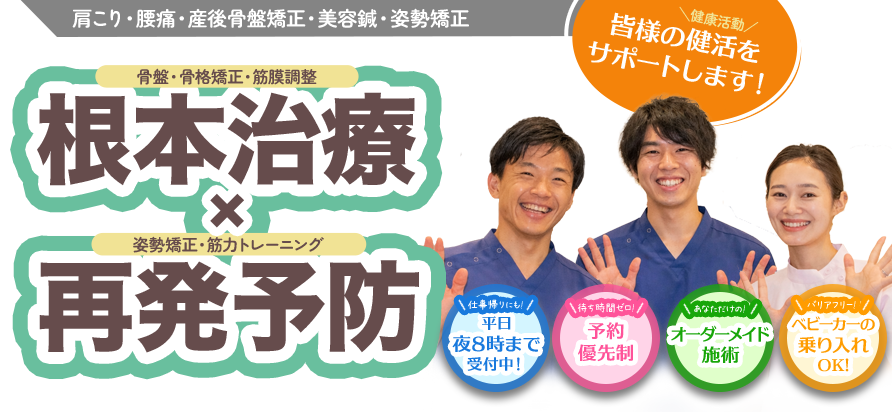 痛みを取り除く施術と原因を改善していく施術は、その人の生活スタイルによって変わります。患者さんの日常生活に合わせたオーダーメイドの施術を行い、最短で原因が改善できるよう施術・提案を行います。